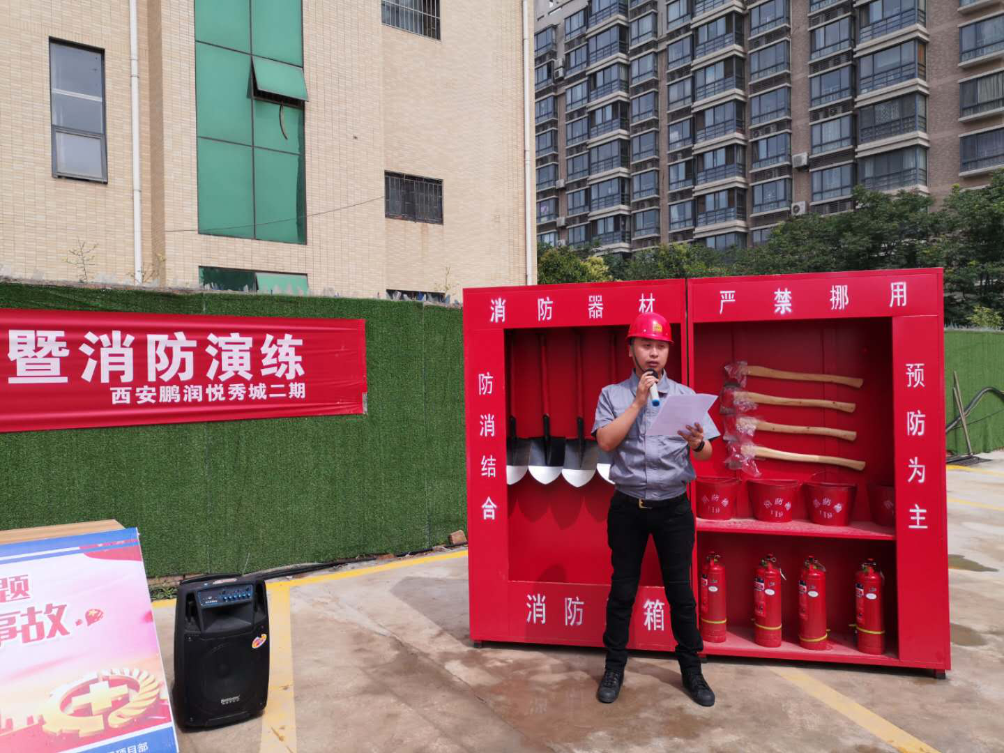 公司西安鵬潤悅秀城二期項(xiàng)目部開展安全生產(chǎn)月啟動儀式暨消防演練