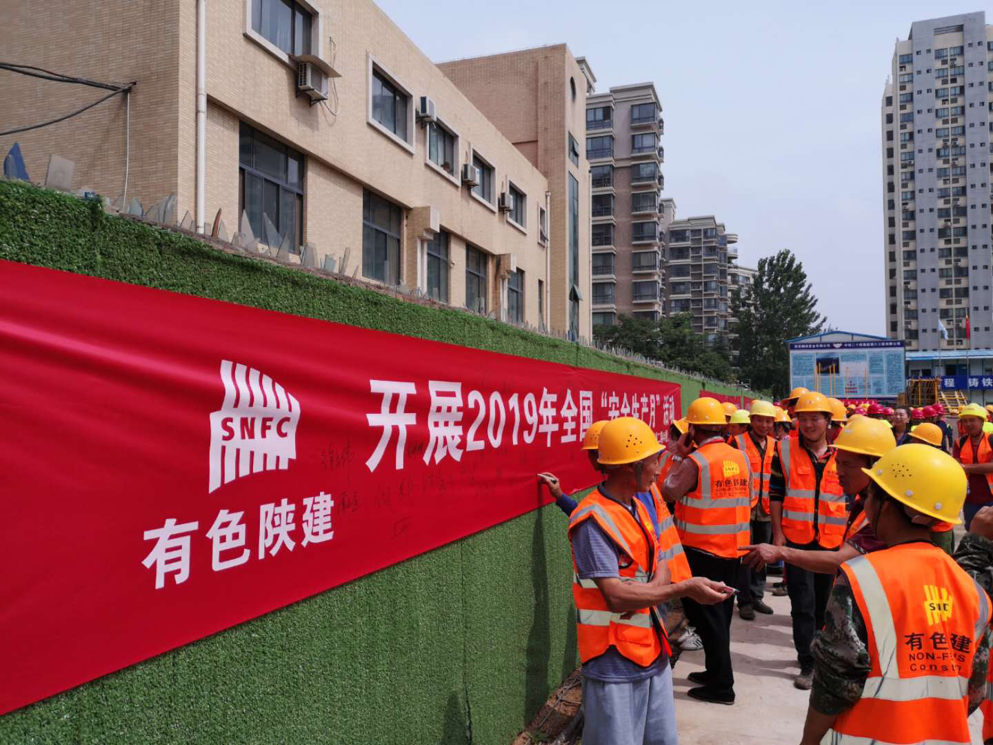6月6日上午十點(diǎn),悅秀城二期項(xiàng)目“安全生產(chǎn)月”啟動儀式正式開始,西安鵬潤置業(yè)有限公司副總王衛(wèi)武、監(jiān)理單位總監(jiān)理工程師曹恩黨、公司安全環(huán)保經(jīng)理吳鑫和項(xiàng)目經(jīng)理孫杰分別對本次活動及安全生產(chǎn)月工作作了動員和安排部署。項(xiàng)目部安全主管領(lǐng)項(xiàng)目全體人員進(jìn)行安全宣誓安全承諾簽字。